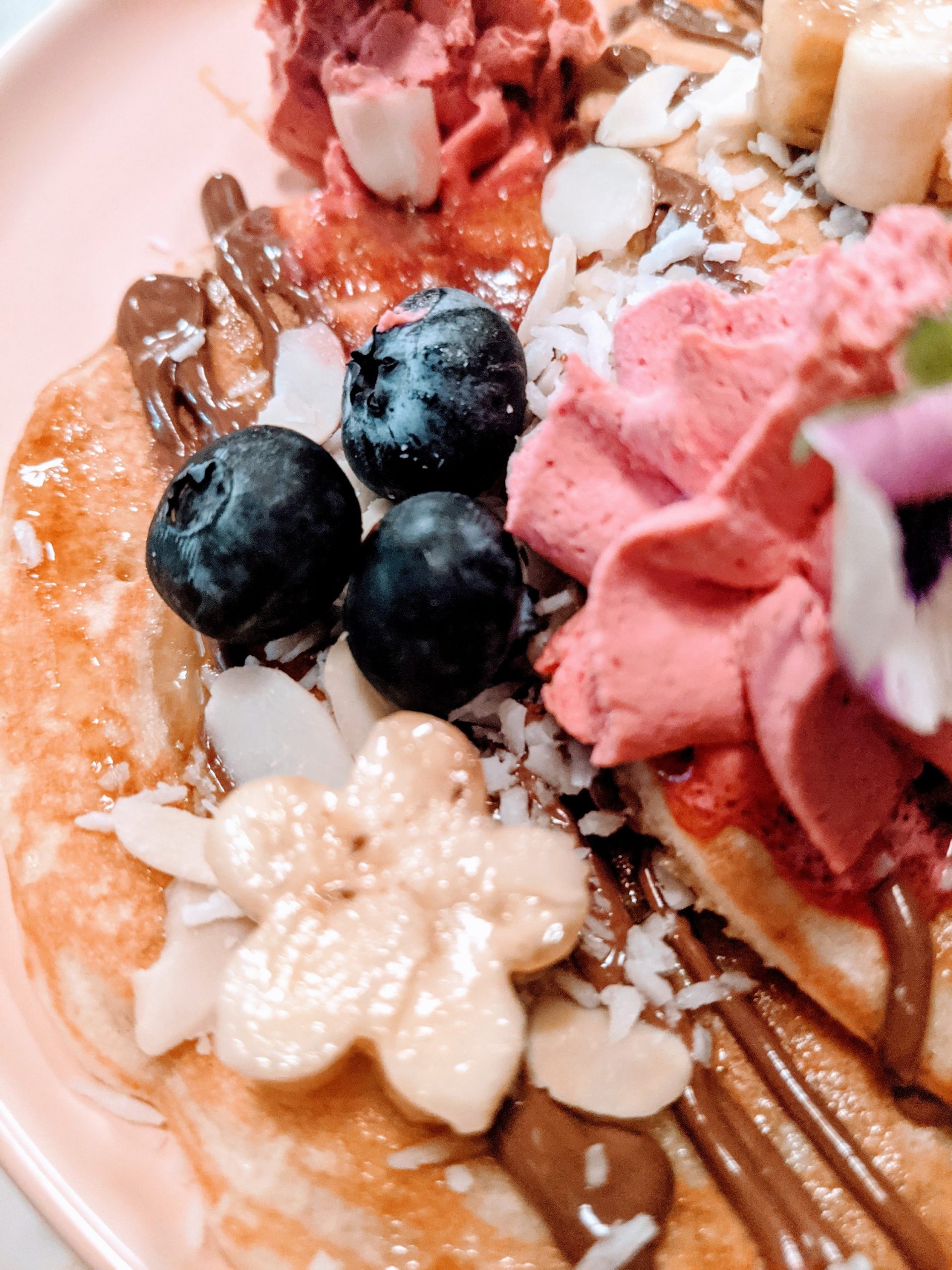 We went for 2 Karak Chaii’s, and the happiness pancake, and tell me how and where do I even start to pick on this beauty? They even cut the bananas into flowers. How cute!