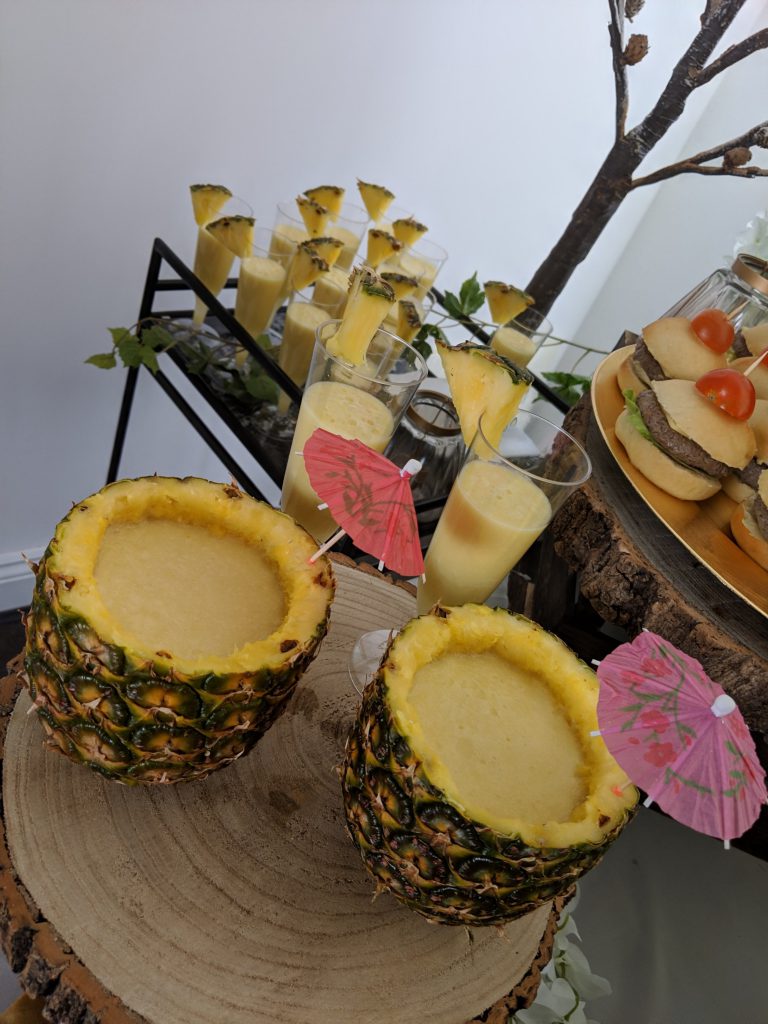 and lastly the Pina Colada. We did a few in the pineapples for the photos, the rest were in wine glasses (it is hard work. Maybe for another blog post one day? hmmmm…… there is an idea)