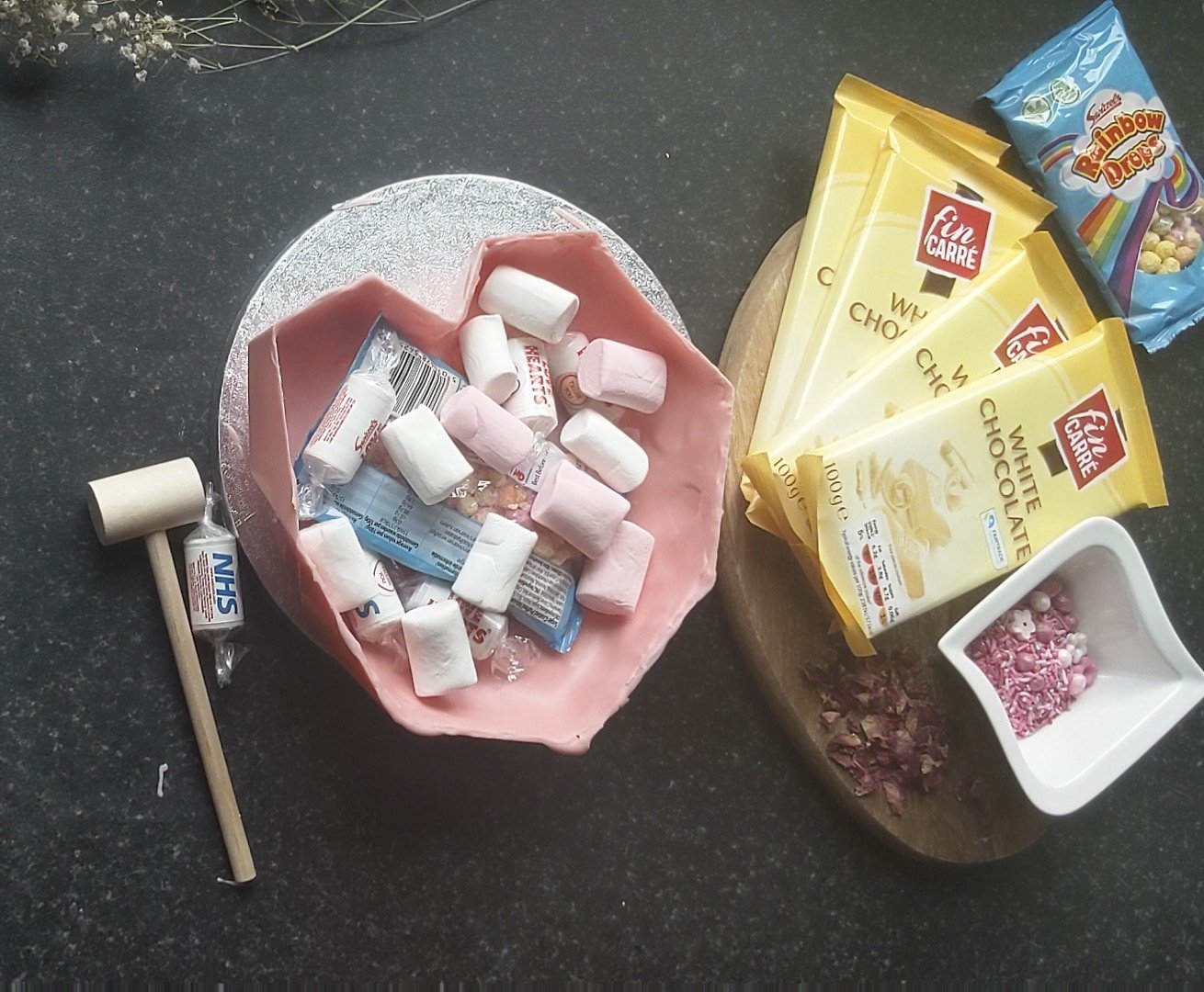 - Goodies to put inside (I used Marshmallows, Lovehearts and Raindrops)