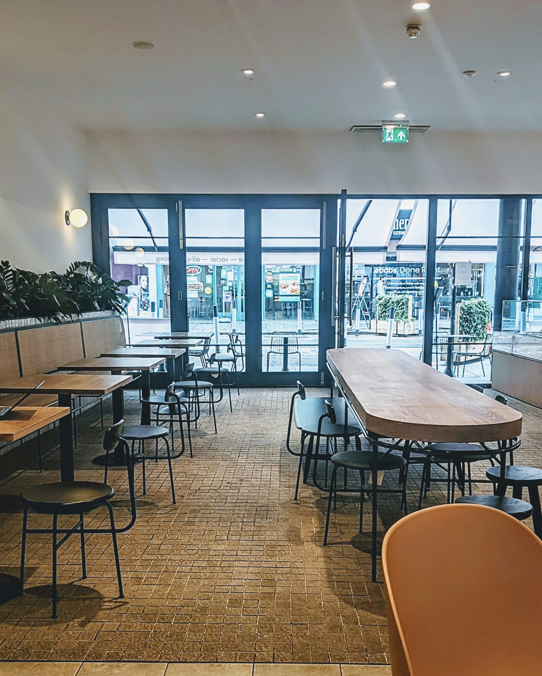 The interior seems to be a mix match of areas- going from informal with benches and stools, to table and chairs and also some couch type seating, but it all sits so well together.