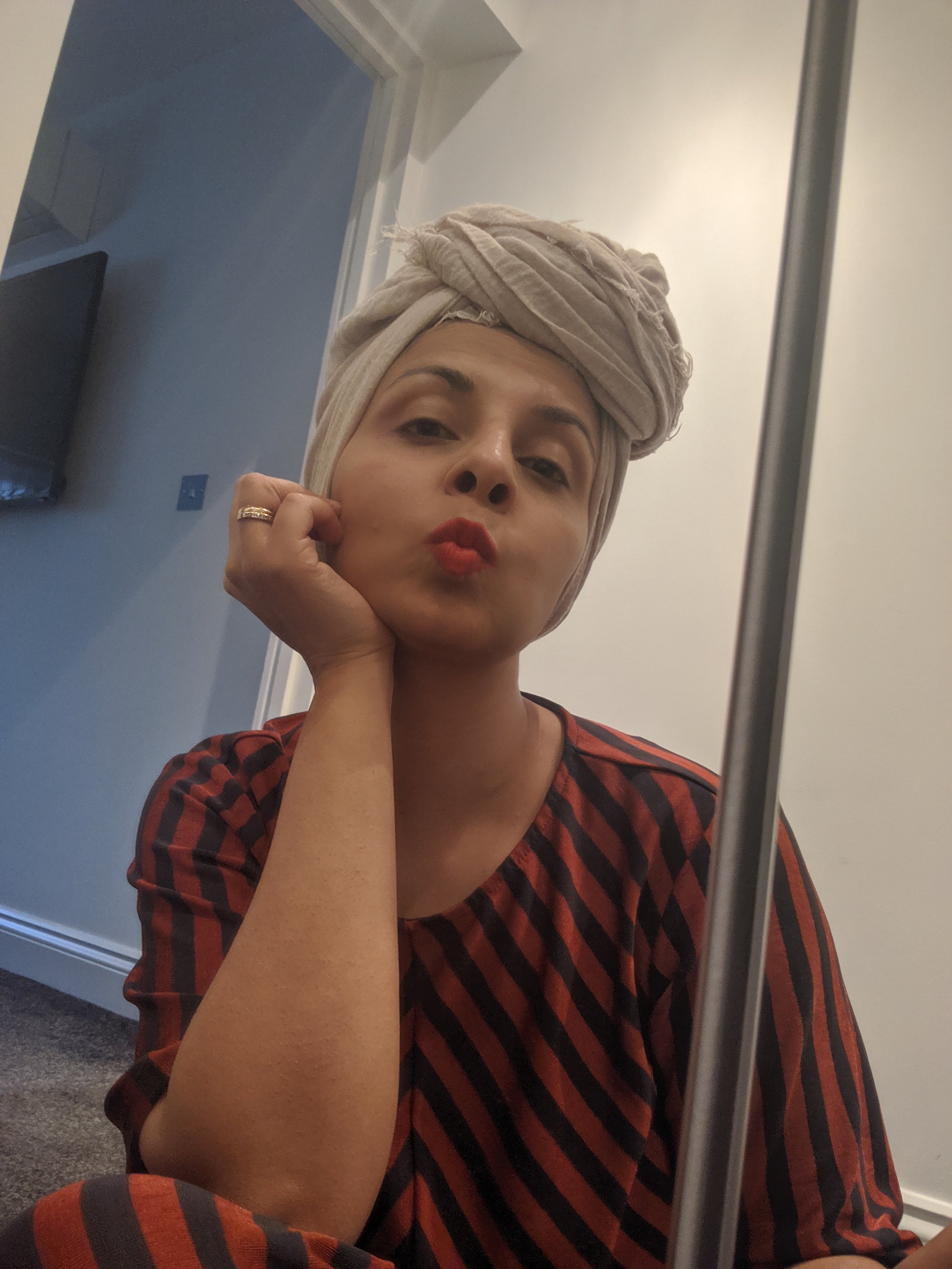 Firstly I’m sharing a recent photo of me- with lipstick only. (Say Hello to my little bundle of joy Sabina!)