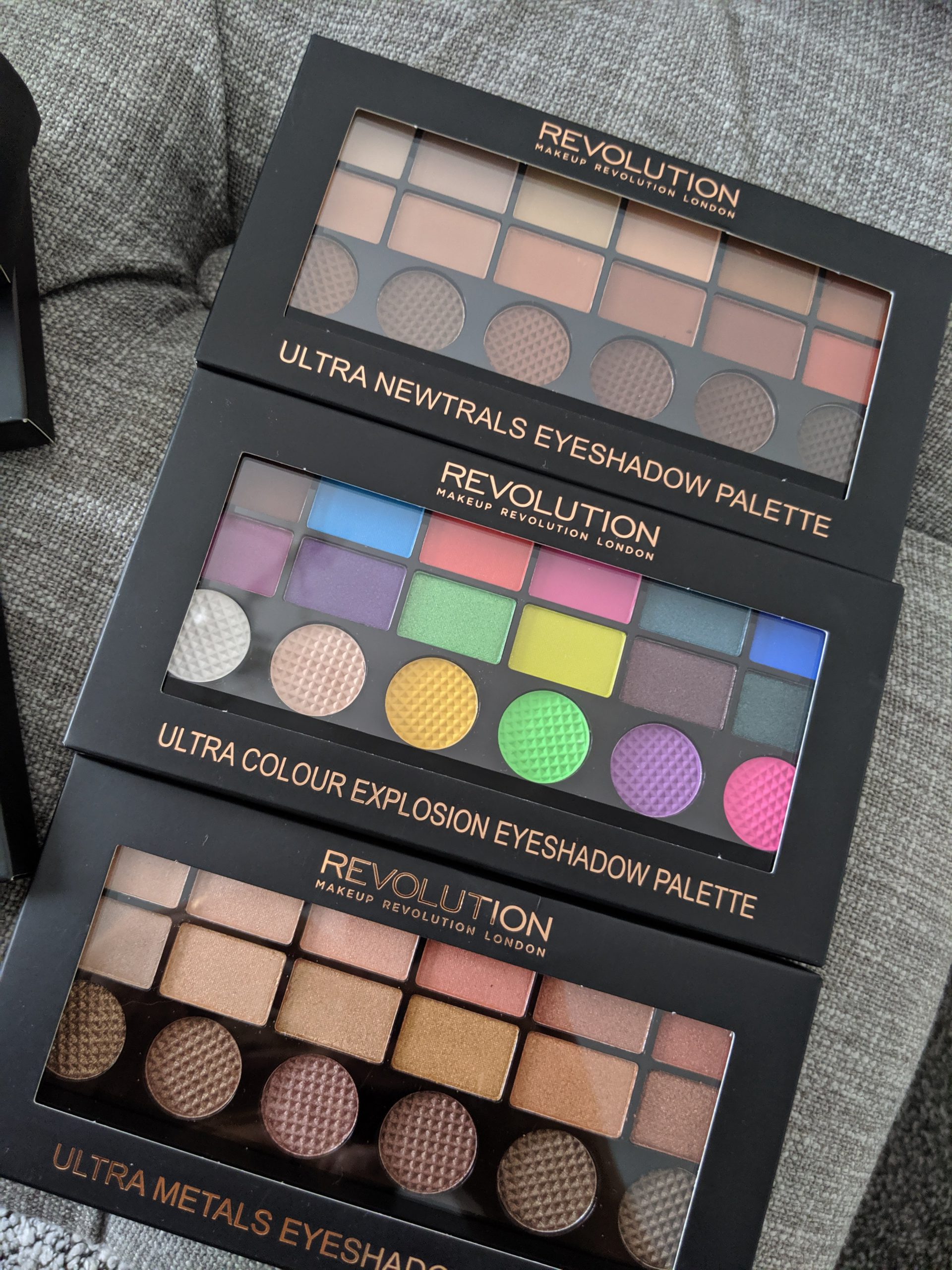 Firstly there’s Three Eyeshadow palettes. The Ultra Metals and the Ultra Newtrals are in similar shades, but one is a matte and the other is on the shinier side. Both of these are in neutral shades going from cream, to pinks, and then to browns. The Third Palette is the Ultra Colour Explosion Palette- the name says is all. The Perfect colours for when you want to go all out.