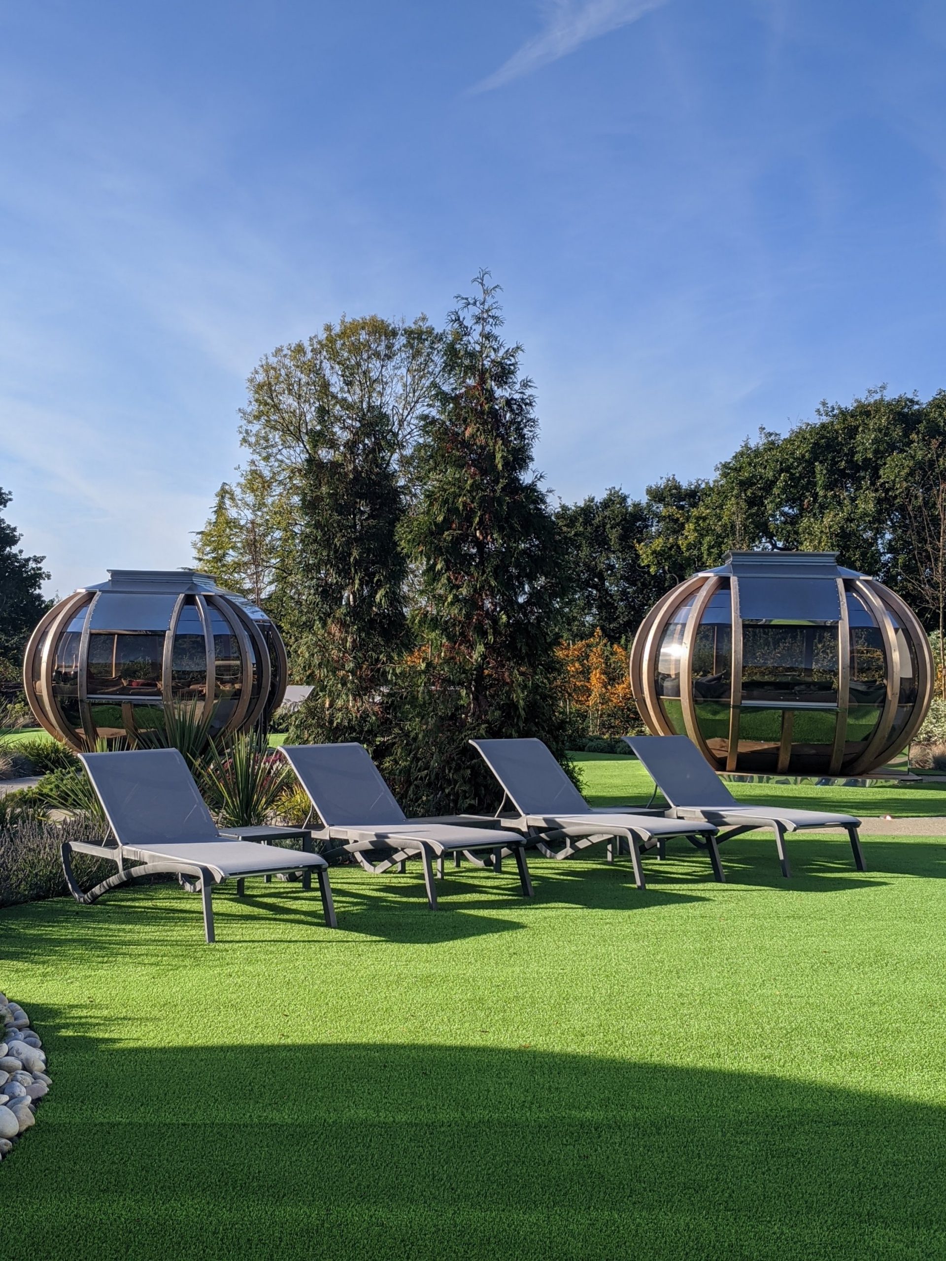 …Cosy pods to settle into, sun loungers popped up everywhere, a firepit, outdoor sauna (which was closed due to covid) and….. absolute and pure Bliss!! were we really in Manchester? *pinch me, I think I’m dreaming….. not too hard though*
